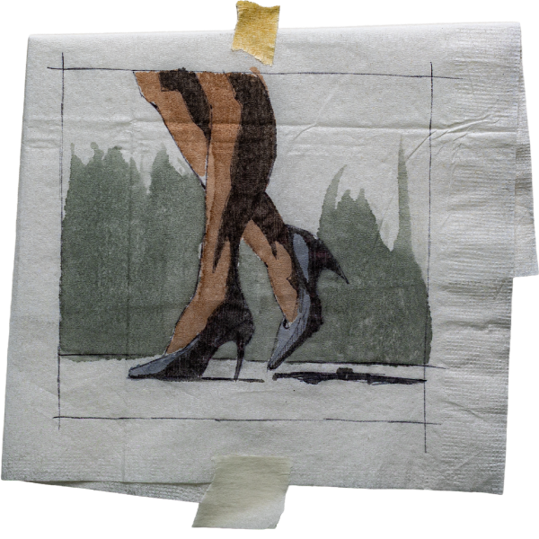 An original drawing from the first scene of Episode One. BIC pen and marker on a cocktail napkin. Signed, framed 7”x5”.