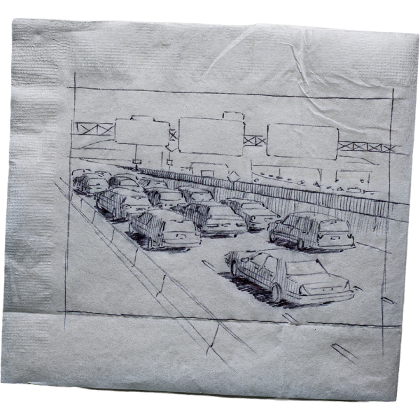 An original drawing from Episode One. BIC pen on a cocktail napkin. Signed, framed 7”x5”.
